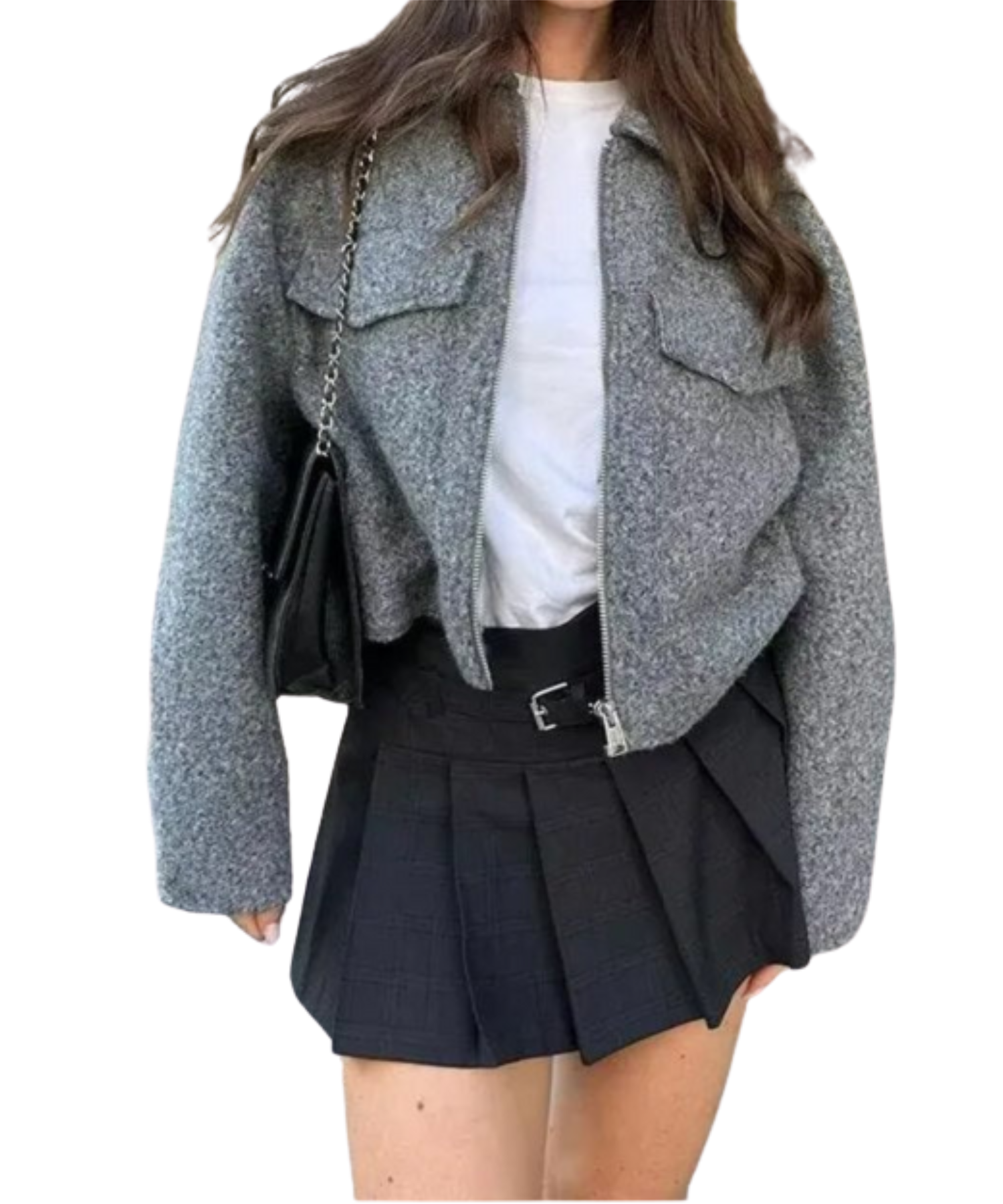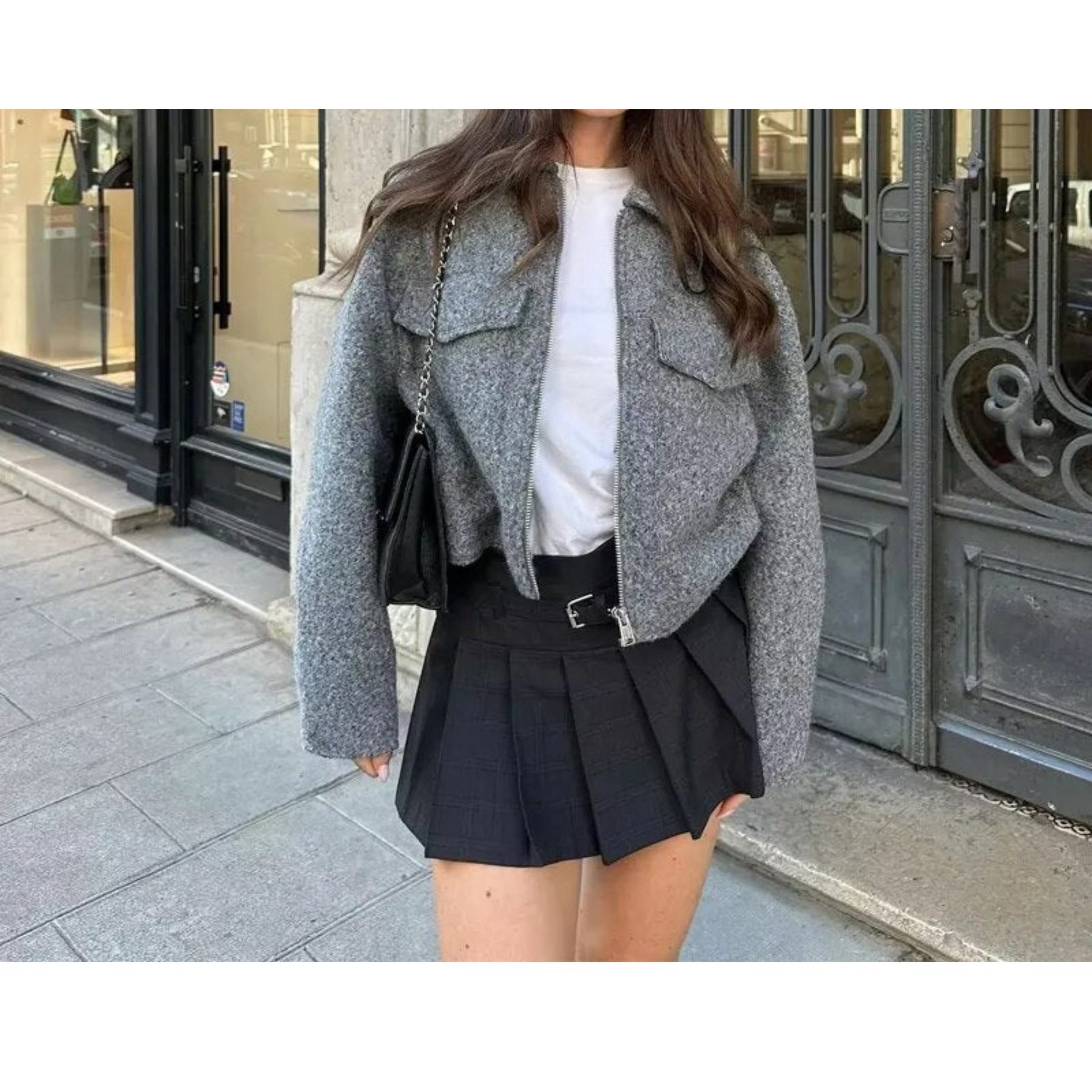 Tilfør tidløs stil og ultimat komfort til garderoben din med denne grå kåpen i ullblanding. Denne moderne, korte jakken er laget av en varm, myk ullblanding som er perfekt for kjøligere dager.
