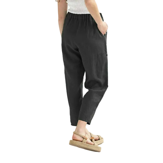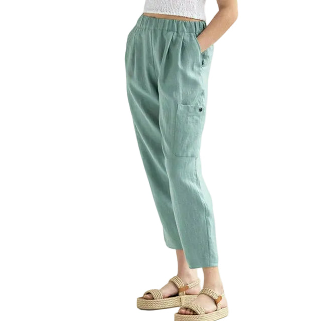 Den rette, lett avsmalnende silhuetten skaper en flatterende passform som enkelt passer en rekke kroppstyper. Den nøytrale gråfargen gjør disse buksene uendelig allsidige – fra avslappet med joggesko til elegant med sandaler eller hæler. De praktiske sidelommene og den diskrete cargolommen gir et trendy og funksjonelt preg.