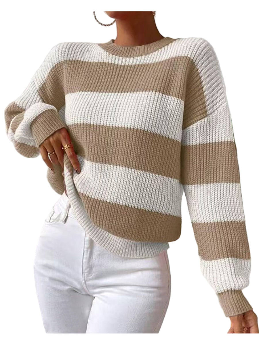 GlamMouris™  | Kvinnens Stripete Langermet Crew Neck Genser