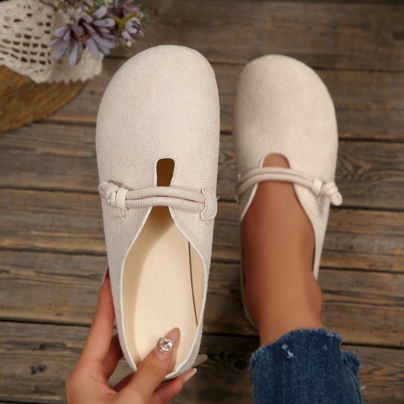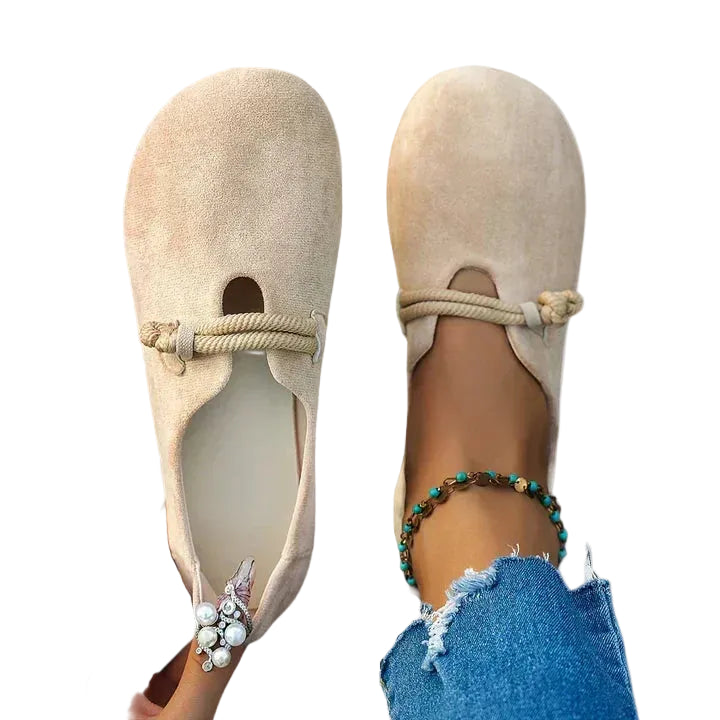Den subtile taudetaljen over vristen gir skoene et unikt, håndverkspreg, mens den runde tåen sikrer en komfortabel passform. Takket være det lette og fleksible materialet er disse loafersene ideelle for hverdagsbruk – fra en avslappet dagstur til et casual-chic antrekk.