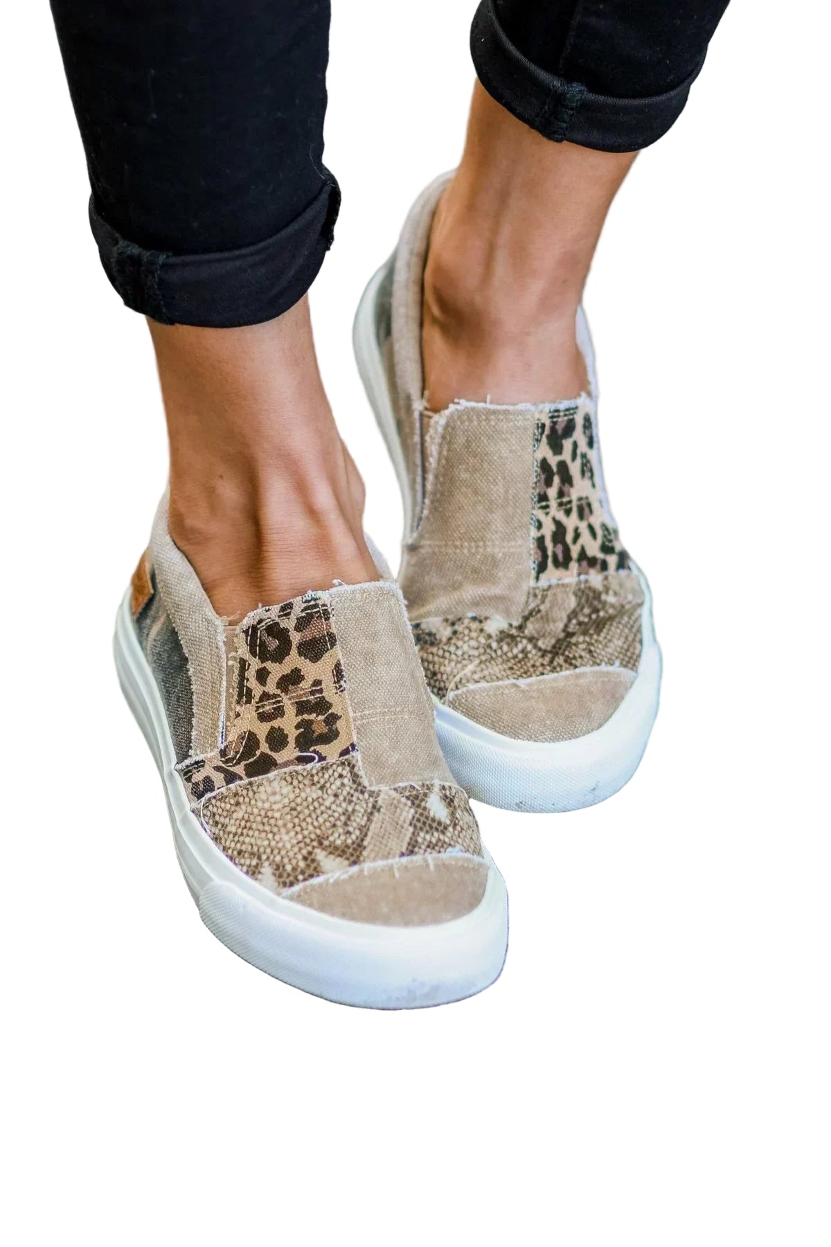 Gi antrekket ditt et lekent og trendy løft med disse patchwork slip-on-sneakersene! Disse unike skoene kombinerer forskjellige stoffer, teksturer og mønstre – blant annet subtile dyreprint – til et stilig, iøynefallende helhet. Perfekt for deg som liker komfort med en kreativ vri.