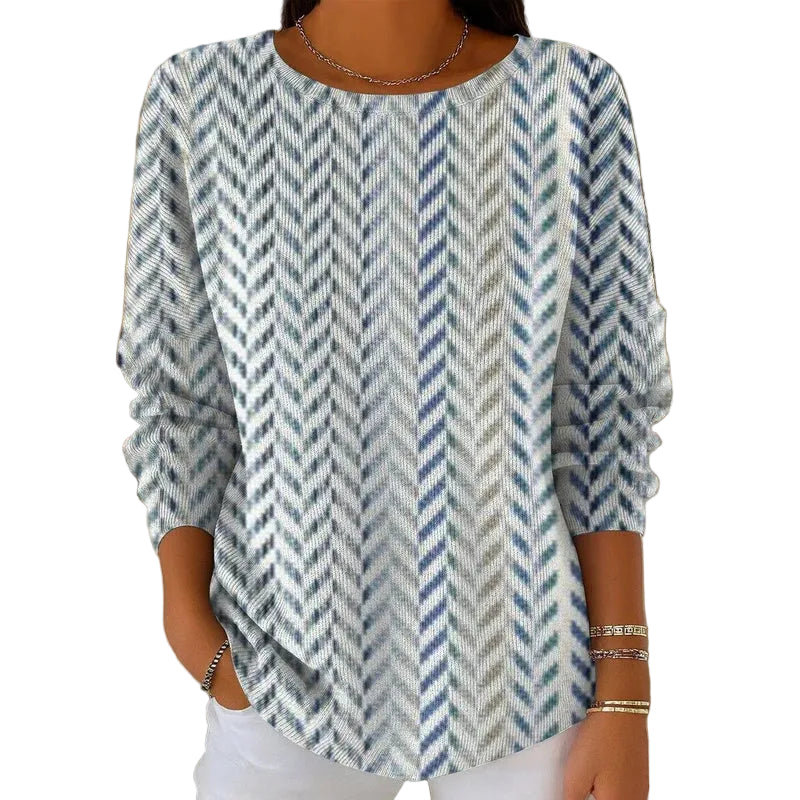 Denne stilige langermede toppen er den perfekte kombinasjonen av komfort og et moderne utseende. Det subtile trykket med et raffinert sikksakkmønster gir toppen et lekent, men diskret utseende, ideelt for hverdagsbruk.