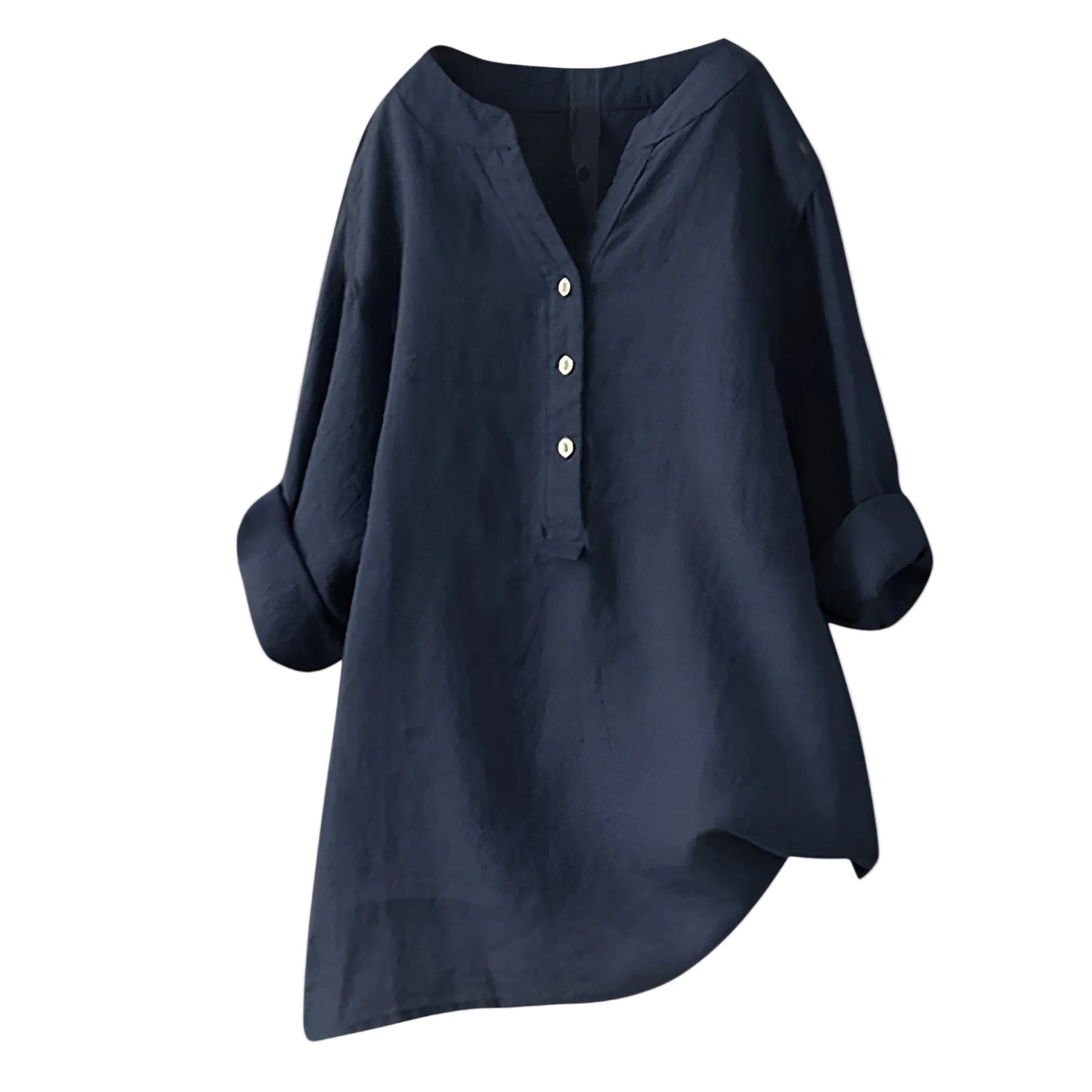 Blusen har en flatterende V-hals med knappedetaljer og opprullede ermer for et avslappet, moderne utseende. Takket være de ensfargede fargene – fra klassisk hvitt og svart til livlige nyanser som rødt, grønt og gult – finnes det alltid en variant som passer din stil.