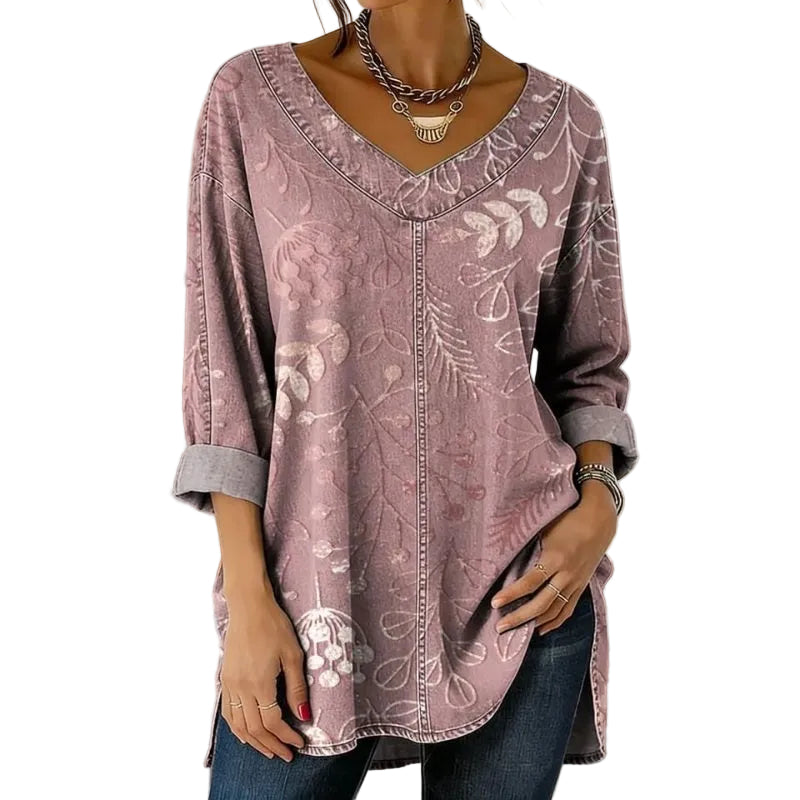 Denne stilige blusen kombinerer et mykt vintage-utseende med ultimat komfort. Det subtile blomstertrykket i varme mauve-toner skaper et romantisk, moderne utseende som er perfekt for en avslappet-chic garderobe.